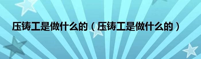 大家好,小安來為大家講解下。壓鑄工是做什么的,壓鑄工是做什么的很多人還不知道,現在讓我們一起來看看吧!