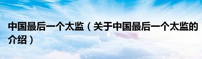 大家好,小安來為大家解答以上的問題。中國最后一個太監,關于中國最后一個太監的介紹很多人還不知道,現在讓我們一起來看看吧!