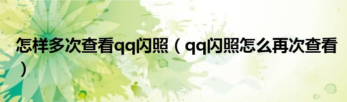 大家好,小安來為大家講解下。怎樣多次查看qq閃照,qq閃照怎么再次查看很多人還不知道,現在讓我們一起來看看吧!