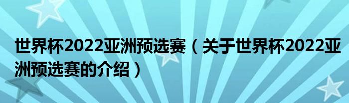 大家好,小安來為大家解答以上的問題。世界杯2022亞洲預選賽,關于世界杯2022亞洲預選賽的介紹很多人還不知道,現在讓我們一起來看看吧!