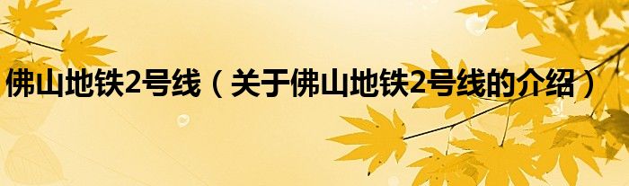 大家好,小安來為大家解答以上的問題。佛山地鐵2號線,關于佛山地鐵2號線的介紹很多人還不知道,現在讓我們一起來看看吧!
