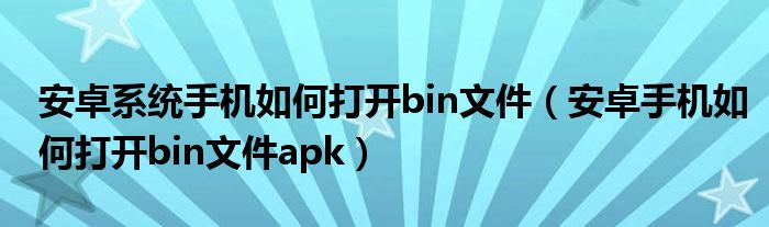 大家好,小安來為大家講解下。安卓系統(tǒng)手機(jī)如何打開bin文件,安卓手機(jī)如何打開bin文件apk很多人還不知道,現(xiàn)在讓我們一起來看看吧!
