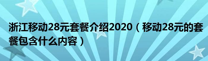 大家好,小安來為大家講解下。浙江移動28元套餐介紹2020,移動28元的套餐包含什么內容很多人還不知道,現在讓我們一起來看看吧!