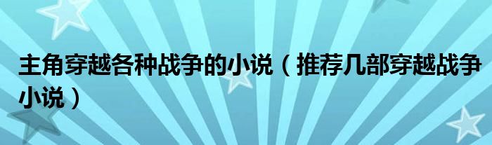 大家好,小安來為大家講解下。主角穿越各種戰爭的小說,推薦幾部穿越戰爭小說很多人還不知道,現在讓我們一起來看看吧!
