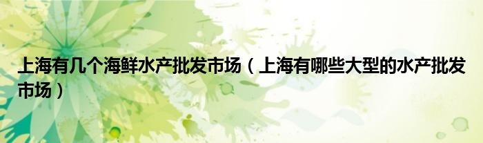 大家好,小安來為大家講解下。上海有幾個海鮮水產(chǎn)批發(fā)市場,上海有哪些大型的水產(chǎn)批發(fā)市場很多人還不知道,現(xiàn)在讓我們一起來看看吧!
