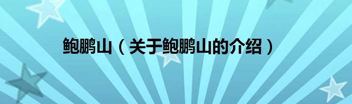 大家好,小安來為大家解答以上的問題。鮑鵬山,關于鮑鵬山的介紹很多人還不知道,現在讓我們一起來看看吧!