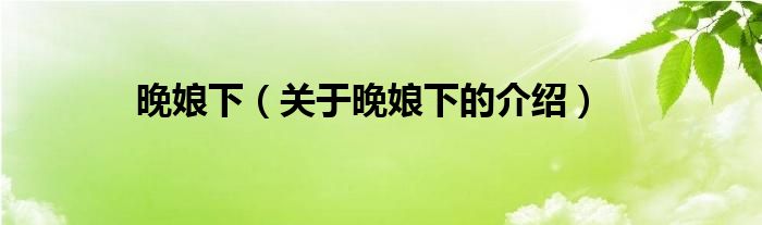 大家好,小安來為大家解答以上的問題。晚娘下,關于晚娘下的介紹很多人還不知道,現在讓我們一起來看看吧!