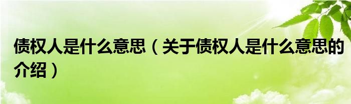 大家好,小安來為大家解答以上的問題。債權人是什么意思,關于債權人是什么意思的介紹很多人還不知道,現在讓我們一起來看看吧!