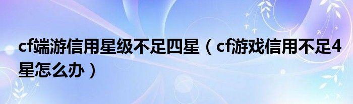 大家好,小安來為大家講解下。cf端游信用星級不足四星,cf游戲信用不足4星怎么辦很多人還不知道,現在讓我們一起來看看吧!