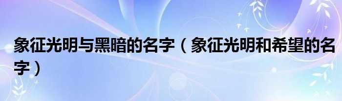 大家好,小安來為大家講解下。象征光明與黑暗的名字,象征光明和希望的名字很多人還不知道,現(xiàn)在讓我們一起來看看吧!