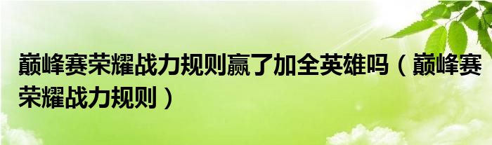 大家好,小安來為大家講解下。巔峰賽榮耀戰力規則贏了加全英雄嗎,巔峰賽榮耀戰力規則很多人還不知道,現在讓我們一起來看看吧!