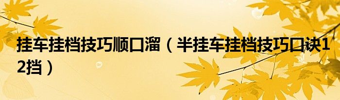 大家好,小安來為大家講解下。掛車掛檔技巧順口溜,半掛車掛檔技巧口訣12擋很多人還不知道,現在讓我們一起來看看吧!