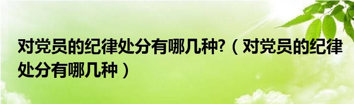 大家好,小安來(lái)為大家講解下。對(duì)黨員的紀(jì)律處分有哪幾種?,對(duì)黨員的紀(jì)律處分有哪幾種很多人還不知道,現(xiàn)在讓我們一起來(lái)看看吧!