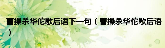 大家好,小安來為大家講解下。曹操殺華佗歇后語下一句,曹操殺華佗歇后語很多人還不知道,現在讓我們一起來看看吧!