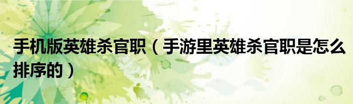 大家好,小安來為大家講解下。手機版英雄殺官職,手游里英雄殺官職是怎么排序的很多人還不知道,現在讓我們一起來看看吧!