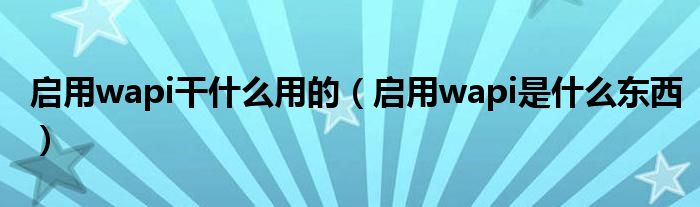 大家好,小安來為大家講解下。啟用wapi干什么用的,啟用wapi是什么東西很多人還不知道,現(xiàn)在讓我們一起來看看吧!