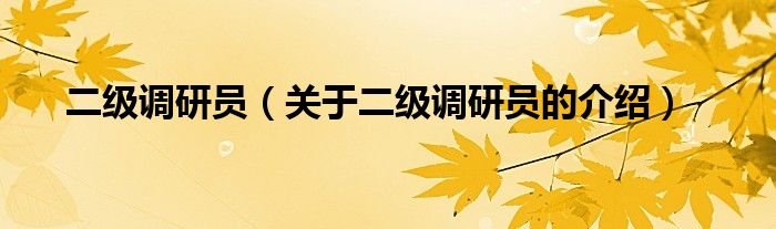 大家好,小安來為大家解答以上的問題。二級調(diào)研員,關(guān)于二級調(diào)研員的介紹很多人還不知道,現(xiàn)在讓我們一起來看看吧!