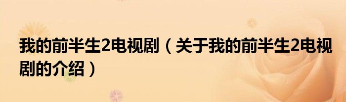 大家好,小安來為大家解答以上的問題。我的前半生2電視劇,關于我的前半生2電視劇的介紹很多人還不知道,現在讓我們一起來看看吧!