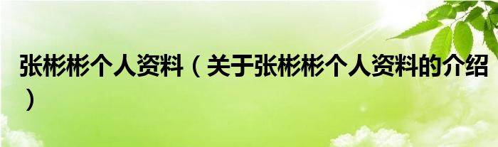 大家好,小安來為大家解答以上的問題。張彬彬個人資料,關于張彬彬個人資料的介紹很多人還不知道,現在讓我們一起來看看吧!
