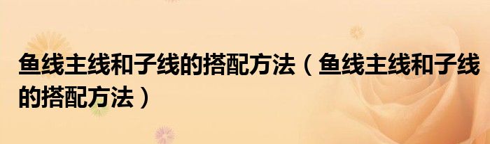 大家好,小安來為大家講解下。魚線主線和子線的搭配方法,魚線主線和子線的搭配方法很多人還不知道,現(xiàn)在讓我們一起來看看吧!