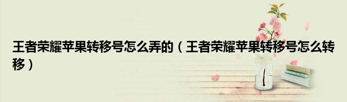 大家好,小安來為大家講解下。王者榮耀蘋果轉移號怎么弄的,王者榮耀蘋果轉移號怎么轉移很多人還不知道,現在讓我們一起來看看吧!