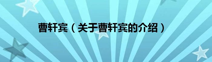大家好,小安來為大家解答以上的問題。曹軒賓,關于曹軒賓的介紹很多人還不知道,現在讓我們一起來看看吧!