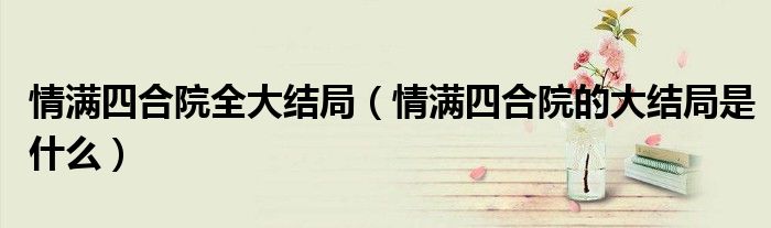 大家好,小安來(lái)為大家講解下。情滿四合院全大結(jié)局,情滿四合院的大結(jié)局是什么很多人還不知道,現(xiàn)在讓我們一起來(lái)看看吧!