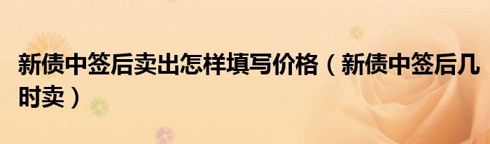 大家好,小安來為大家講解下。新債中簽后賣出怎樣填寫價格,新債中簽后幾時賣很多人還不知道,現在讓我們一起來看看吧!