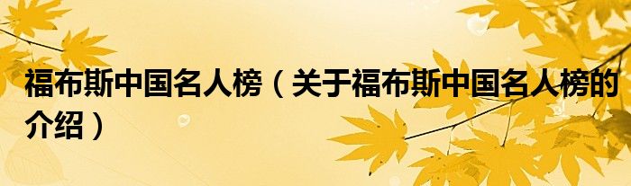 大家好,小安來為大家解答以上的問題。福布斯中國名人榜,關于福布斯中國名人榜的介紹很多人還不知道,現在讓我們一起來看看吧!