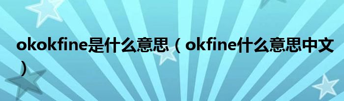 大家好,小安來為大家講解下。okokfine是什么意思,okfine什么意思中文很多人還不知道,現在讓我們一起來看看吧!