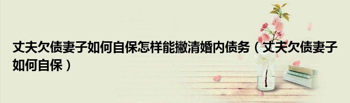 大家好,小安來為大家講解下。丈夫欠債妻子如何自保怎樣能撇清婚內(nèi)債務(wù),丈夫欠債妻子如何自保很多人還不知道,現(xiàn)在讓我們一起來看看吧!