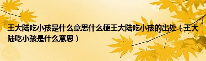 大家好,小安來為大家講解下。王大陸吃小孩是什么意思什么梗王大陸吃小孩的出處,王大陸吃小孩是什么意思很多人還不知道,現在讓我們一起來看看吧!