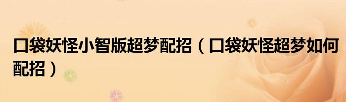 大家好,小安來為大家講解下。口袋妖怪小智版超夢配招,口袋妖怪超夢如何配招很多人還不知道,現在讓我們一起來看看吧!
