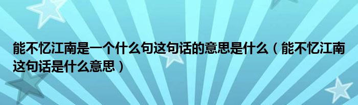大家好,小安來為大家講解下。能不憶江南是一個什么句這句話的意思是什么,能不憶江南這句話是什么意思很多人還不知道,現在讓我們一起來看看吧!