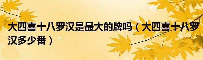 大家好,小安來為大家講解下。大四喜十八羅漢是最大的牌嗎,大四喜十八羅漢多少番很多人還不知道,現(xiàn)在讓我們一起來看看吧!