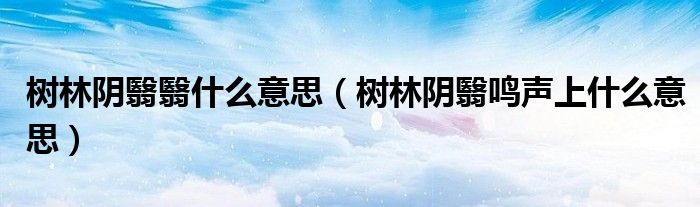 大家好,小安來為大家講解下。樹林陰翳翳什么意思,樹林陰翳鳴聲上什么意思很多人還不知道,現(xiàn)在讓我們一起來看看吧!