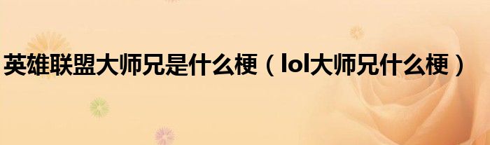 大家好,小安來為大家講解下。英雄聯盟大師兄是什么梗,lol大師兄什么梗很多人還不知道,現在讓我們一起來看看吧!