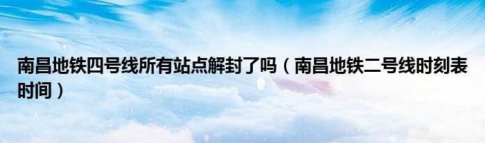 大家好,小安來(lái)為大家講解下。南昌地鐵四號(hào)線所有站點(diǎn)解封了嗎,南昌地鐵二號(hào)線時(shí)刻表時(shí)間很多人還不知道,現(xiàn)在讓我們一起來(lái)看看吧!