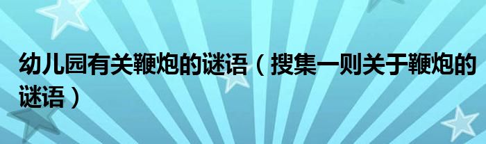 大家好,小安來為大家講解下。幼兒園有關鞭炮的謎語,搜集一則關于鞭炮的謎語很多人還不知道,現在讓我們一起來看看吧!
