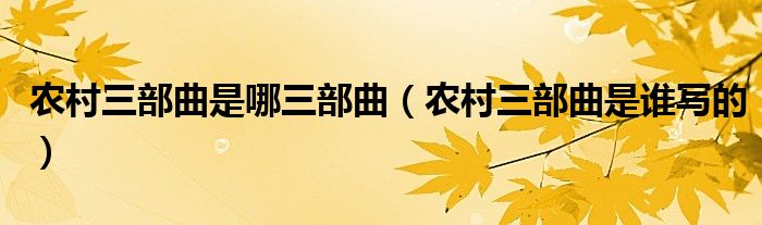 大家好,小安來為大家講解下。農村三部曲是哪三部曲,農村三部曲是誰寫的很多人還不知道,現在讓我們一起來看看吧!