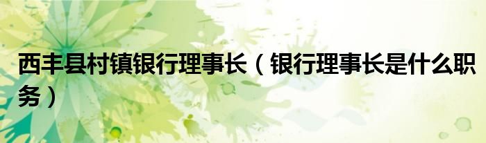 大家好,小安來為大家講解下。西豐縣村鎮銀行理事長,銀行理事長是什么職務很多人還不知道,現在讓我們一起來看看吧!