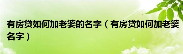 大家好,小安來為大家講解下。有房貸如何加老婆的名字,有房貸如何加老婆名字很多人還不知道,現在讓我們一起來看看吧!