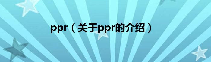 大家好,小安來為大家解答以上的問題。ppr,關于ppr的介紹很多人還不知道,現在讓我們一起來看看吧!