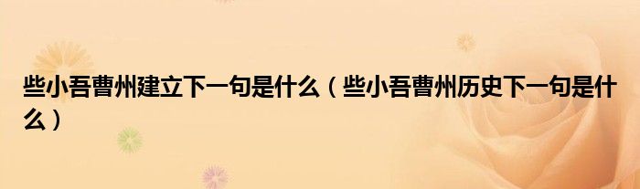大家好,小安來為大家講解下。些小吾曹州建立下一句是什么,些小吾曹州歷史下一句是什么很多人還不知道,現在讓我們一起來看看吧!