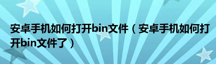 大家好,小安來為大家講解下。安卓手機如何打開bin文件,安卓手機如何打開bin文件了很多人還不知道,現在讓我們一起來看看吧!