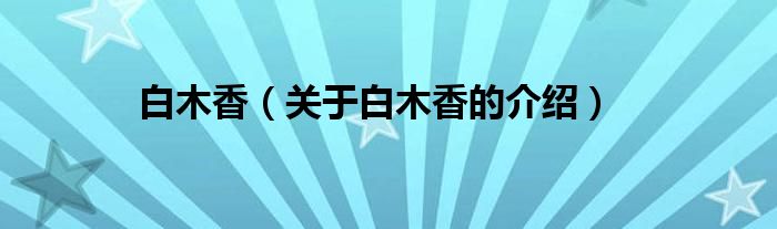 大家好,小安來為大家解答以上的問題。白木香,關于白木香的介紹很多人還不知道,現在讓我們一起來看看吧!