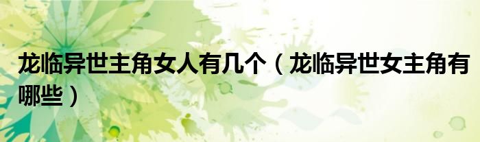 大家好,小安來為大家講解下。龍臨異世主角女人有幾個,龍臨異世女主角有哪些很多人還不知道,現在讓我們一起來看看吧!