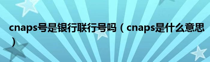 大家好,小安來為大家講解下。cnaps號是銀行聯(lián)行號嗎,cnaps是什么意思很多人還不知道,現(xiàn)在讓我們一起來看看吧!