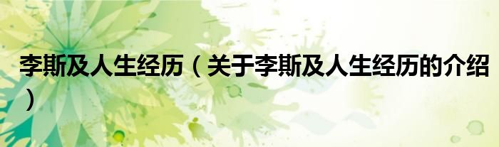 大家好,小安來為大家解答以上的問題。李斯及人生經歷很多人還不知道,現在讓我們一起來看看吧!