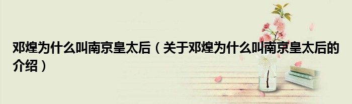大家好,小安來為大家解答以上的問題。鄧煌為什么叫南京皇太后,關(guān)于鄧煌為什么叫南京皇太后的介紹很多人還不知道,現(xiàn)在讓我們一起來看看吧!